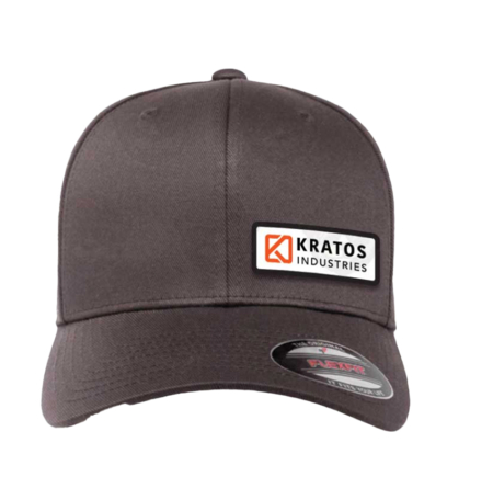 Kratos patch, off-set. Flex Fit hat. One Color – Dark Grey